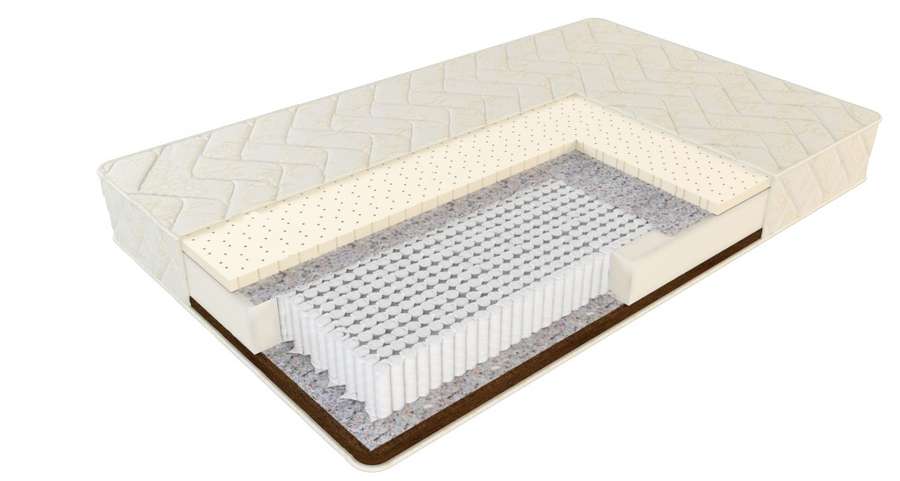 Ортопедический эффект пружинного блока Мультипакет гармонично дополняется анатомическими свойствами эластичного и упругого слоя натурального латекса с одной стороны, и кокосовой койры с другой. По своему усмотрению можно выбрать более комфортную сторону для себя.