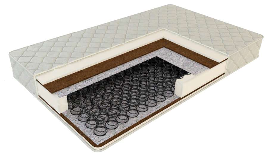 Бюджетный пружинный матрас с кокосовой койрой толщиной 20 мм с каждой стороны.