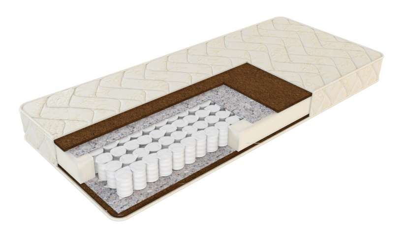 Состав: чехол: хлопковый жаккард, стеганый синтепоном , спанбонд, латексированный кокос 10 мм , войлок ,блок независимых пружин (500 пружин на спальное место) , войлок, латексированный кокос 10 мм , спанбонд, ППУ по периметру .