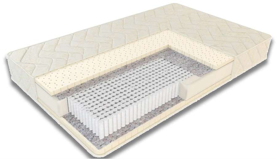 Состав: чехол: хлопковый жаккард, натуральный латекс 20 мм, войлок ,блок независимых пружин (500 пружин на спальное место) ,войлок ,натуральный латекс 20 мм,каркас из ППУ по периметру .