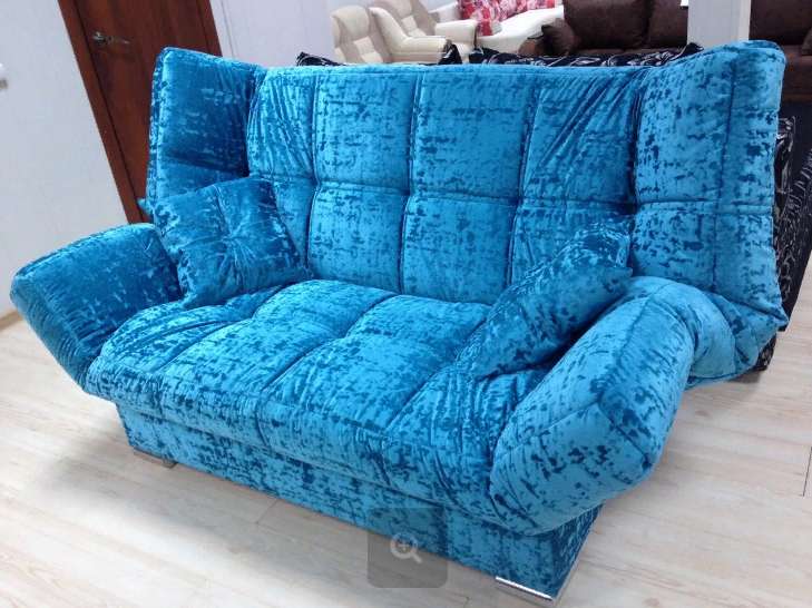 Недорогой и комфортный диван небольших габаритов. Прекрасно впишется в интерьер гостиной или спальни. Чехол простеганный не съемный.