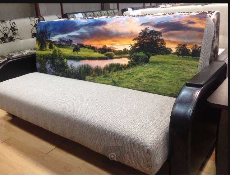 Цена указана за диван на первом фото (ткань мешковина, боковина -экокожа) с радиусными боковинами +накладка прямая с наполнителем ППУ (поролон) -9300 руб., на пружинном блоке стоимость дивана- 10200 руб.