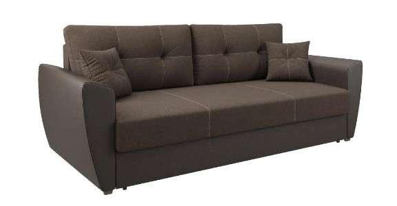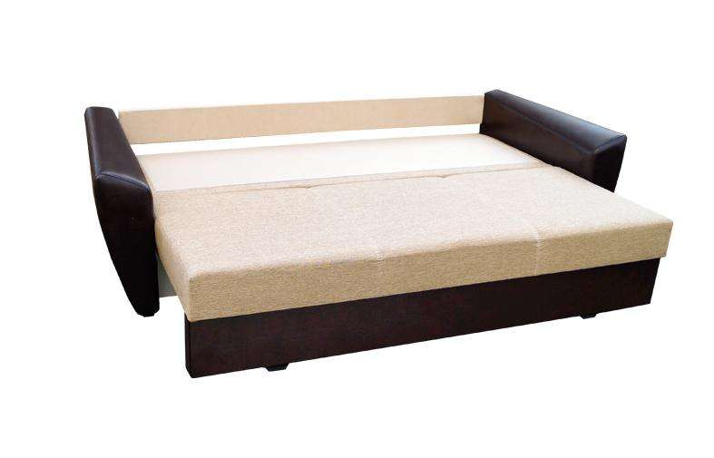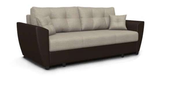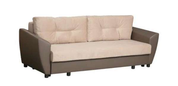 Диван-кровать «Фортуна» это сочетание практичности и стиля. Скошеные округлые формы подлокотников придают оригинальность его простому силуэту. Контрастная обивка в тёплой бежево-коричневой гамме делает это диван элегантным для гостиной, и демократичным - для загородного дома. Удобству посадки способствует пружинный блок «Бонель», а дополнительный комфорт создают две небольшие подушки. В место для сна изделие трансформируется с помощью механизма «Еврокнижка». Внутри дивана предусмотрен ящик для постельных принадлежностей.