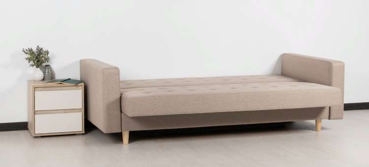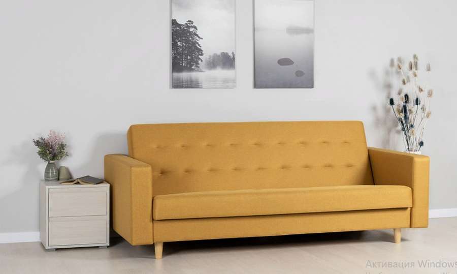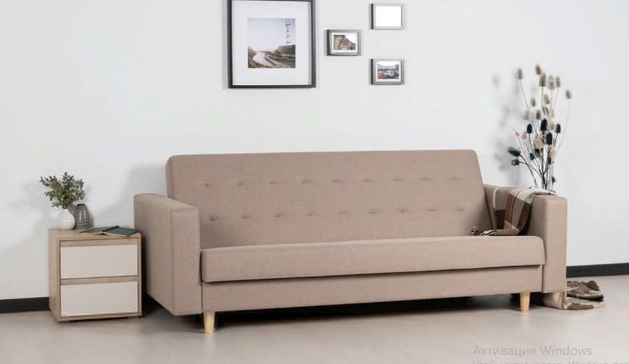 Современный лаконичный диван-книжка с удобной посадкой. Два положения спинки для комфортного отдыха - "сидя" и "релакс". Сиденье и спинка декорированы утяжками. Деревянные опоры высотой 120 мм. Вместительный ящик для белья. Может быть дополнено креслом и пуфом Гарнет.