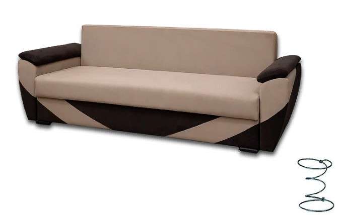 Евротахта изготовлена на базе пружинного блока, которые крепятся к каркасу,обеспечивая повышенную комфортность дивана. На пружинном блоке размещен матрас, выполненный из ППУ, что обеспечивает равный комфорт на всей площади изделия. Подушки подлокотники наполнены ППУ.
