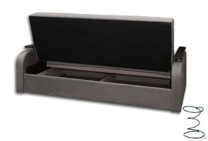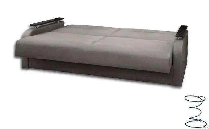 Диван изготовлен на базе блока плоских пружин «змейка», повышенной комфортности. На блоке пружин «змейка», размещен матрас, выполненный из ППУ, что обеспечивает равный комфорт на всей площади изделия.