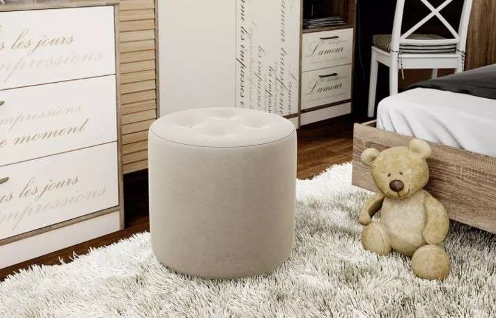 Симпатичный Пуф выполнен в велюре трех расцветок.