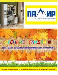 В связи с этим информируем Вас, что наш интернет магазин участвует в АКЦИИ МФ "Памир" и предлагает уникальную возможность приобрести компьютерные столы фабрики "Памир" по акционным ценам. При заказе компьютерного стола фабрики "Памир", уточняйте у менеджера акционные цены, выбранной Вами мебели.
