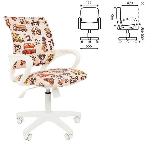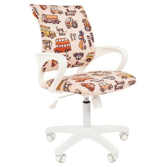 Широкое, эргономичное и надежное детское кресло. Выполнено в белом пластике и качественной ткани велюр с яркими принтами. Прорезиненные ролики обеспечат бесшумный ход и защитят напольное покрытие.