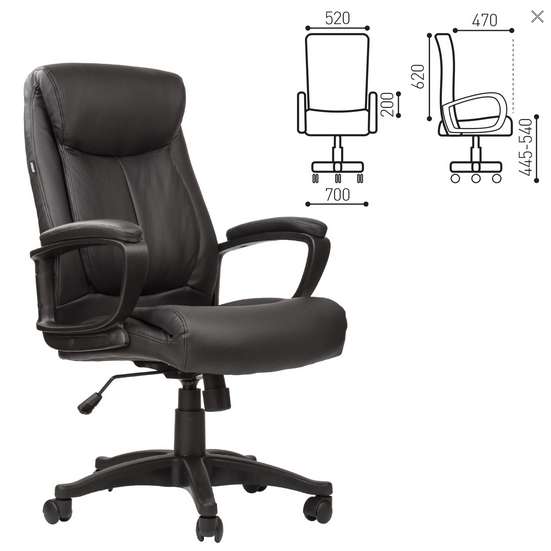 - Кресло офисное "Менеджер", кожа, монолитный каркас, черное цена всего 13900 р.