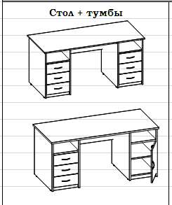 Возможен вариант стола с тумбой и полкой за закрытой дверцой.