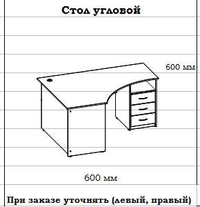 Угловой стол с ящиками, совмещающий в себе отличное качество и низкую стоимость. Выполняется в 2-х вариантах: Правое и Левое исполнение ( По расположению ящиков ).