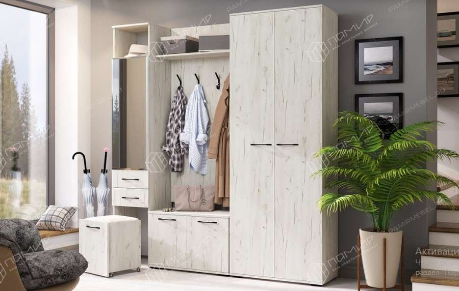 - Состав прихожей на фото : Зеркало З-600; Тумба комбинированная ТК-600; Шкаф угловой ШУ-800; Вешалка В-800; Обувница О-800; Шкаф двухстворчатый ШК-800; Шкаф торцевой ШТВ-370.