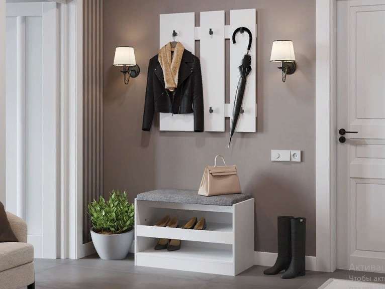 Прихожая состоит из вешалки настенной Агата и тумбы под обувь Агата.