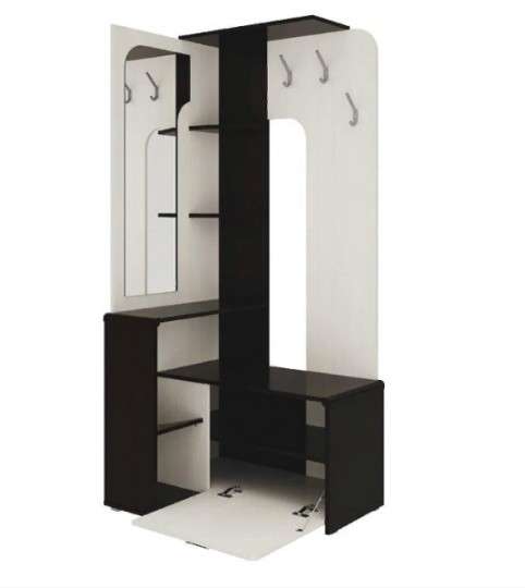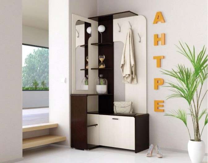 Прихожая «Антре» – компактная и достаточно вместительная прихожая с оригинальным угловым дизайном. В конструкции предусмотрено всё необходимое для хранения верхней одежды, обуви, аксессуаров.