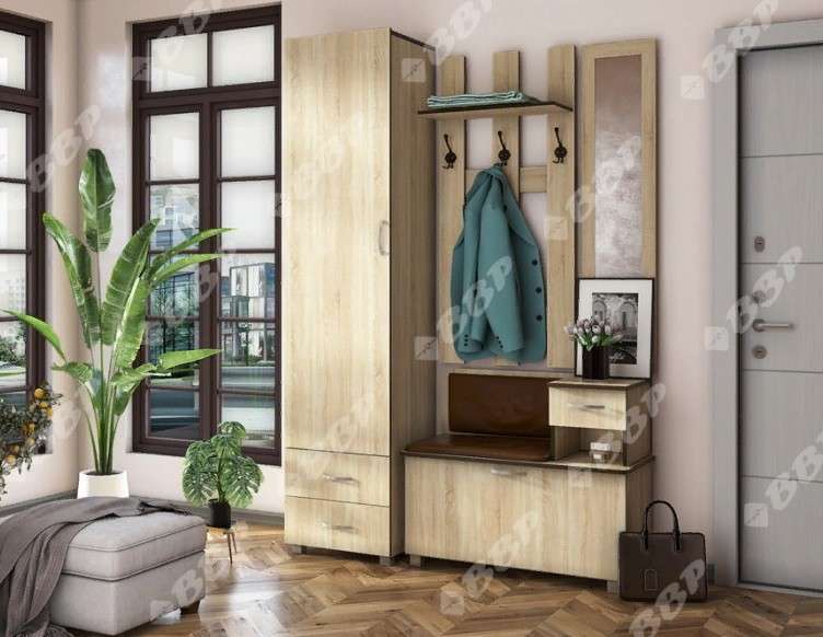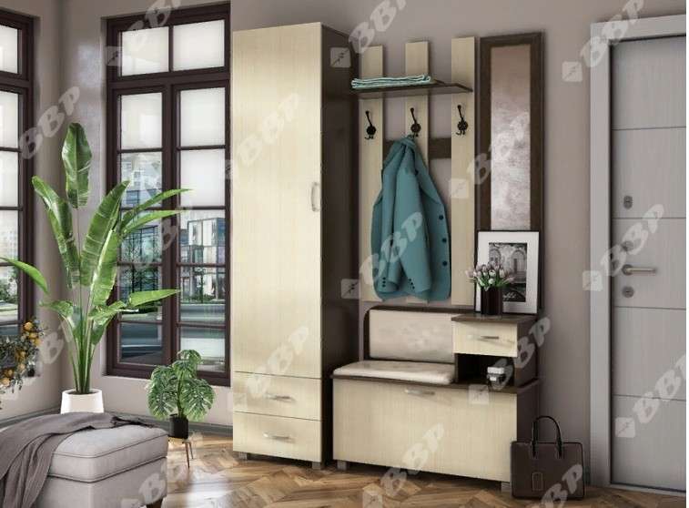Небольшая функциональная прихожая, Имеет отделения для хранения верхней одежды и обуви.Обувница оборудована сиденьем, что делает эту модель максимально комфортной. Маленький ящик отлично подойдет для хранения ключей.