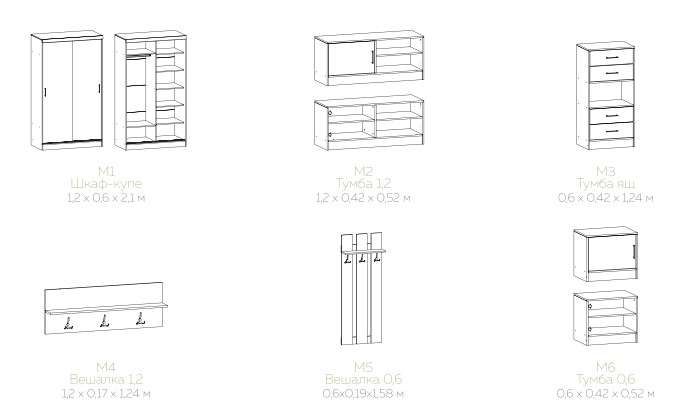 На сайте цена указана за комплект на фото, М1, М2, М4, М8, Размер: 2800х600х2100, (ШхГхВ).