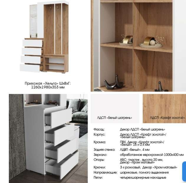 - Несмотря на компактные размеры прихожая «Хельга» имеет высокую функциональность и вместительность, позволяющие сэкономить квадратные метры даже небольшой квартиры.