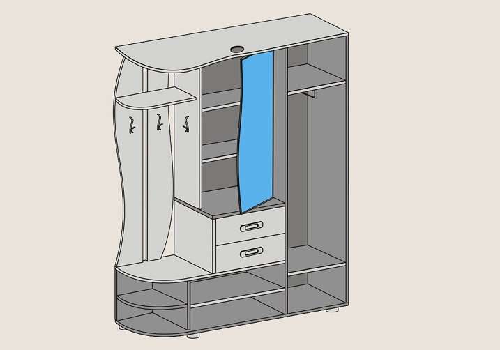 Прихожая изготавливается в левом или правом исполнении. При заказе необходимо уточнять вариант изготовления.