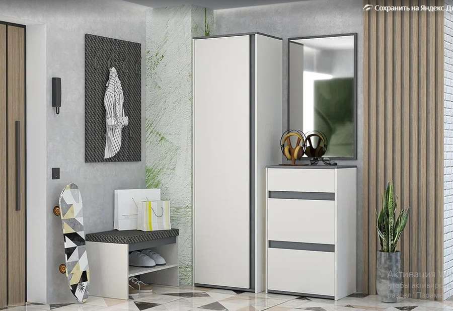 Цена на сайте указана за комплект на фото справа : Шкаф, Пенал, Тумба-2, Обувница и Вешалка.