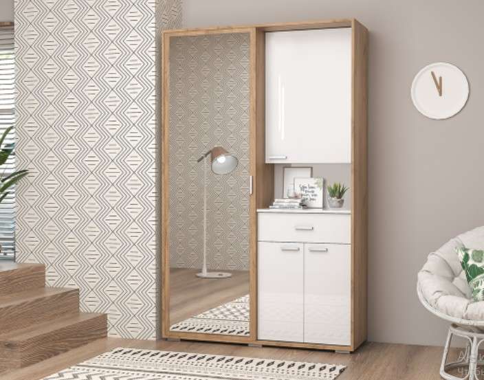Прихожая «Иннэс-4» Дуб крафт золотой/Белый глянец