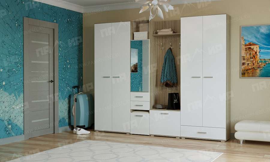 Прихожая «ИТАЛИЯ» модульная Белый глянец, комп.2 (Памир)
