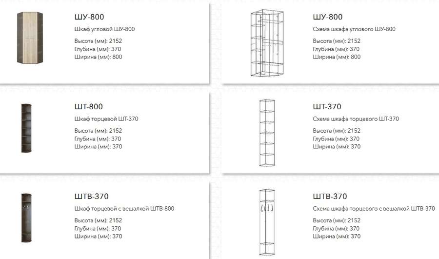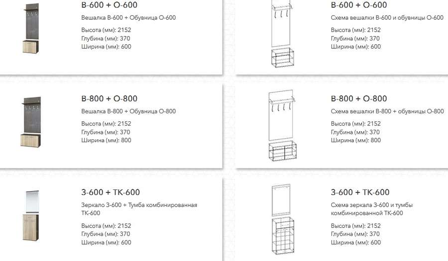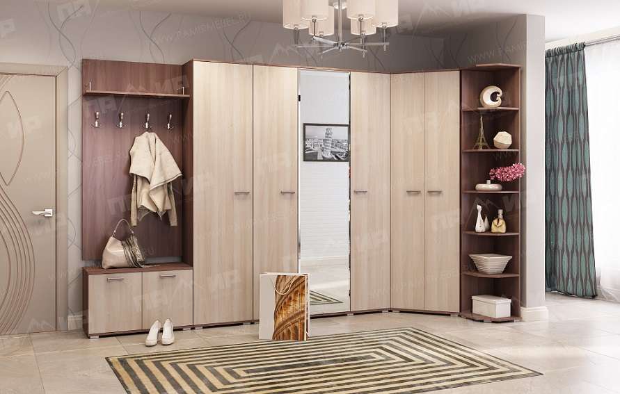 Состав композиции: Вешалка В-800, Обувница О-800; Пенал П-500; Шкаф трёхстворчатый ШК-1300; Шкаф угловой ШУ-800; Шкаф торцевой ШТ-370.