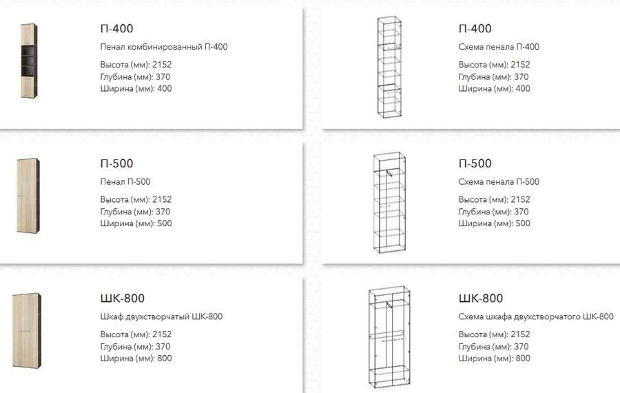 Состав композиции: Шкаф комбинированный с 3-мя ящиками ШК3Я-800; Вешалка В-800; Обувница О-800; Шкаф двухстворчатый ШК-800.