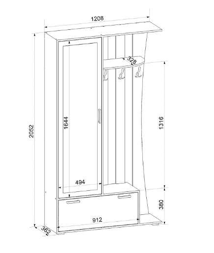 - Размер ( ШхГхВ): 1208х362х2052 мм
