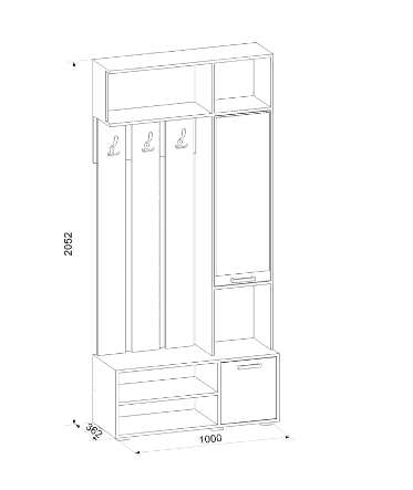 - Размер ( ШхГхВ): 1000 х 362 х 2052 мм