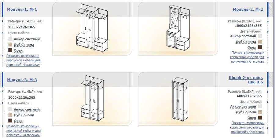 Модульная прихожая Классика .Проявив фантазию, вы самостоятельно можете составить любую комбинацию этой практичной, комфортной мебели для прихожей.