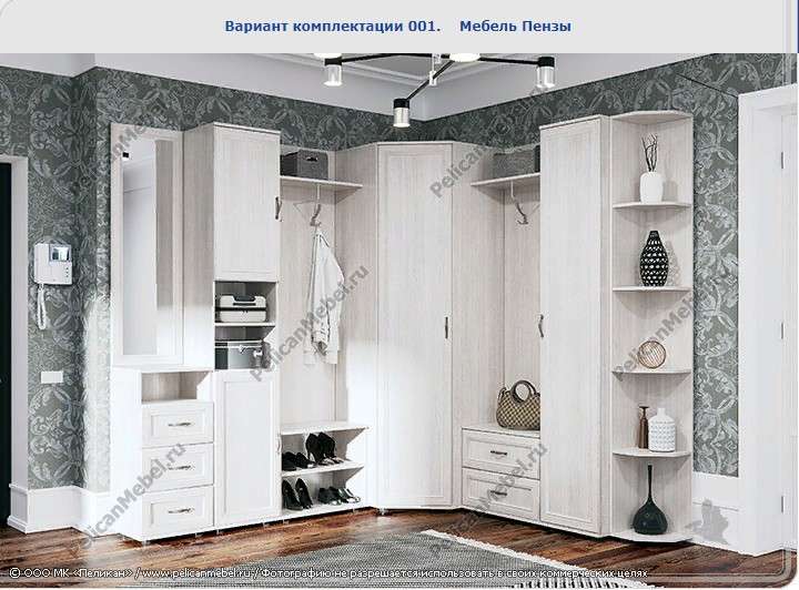Элементы прихожей на фото: М-3, ОЯ, ВШ, ПЯ-М. Цена на сайте указана за данную комплектацию.