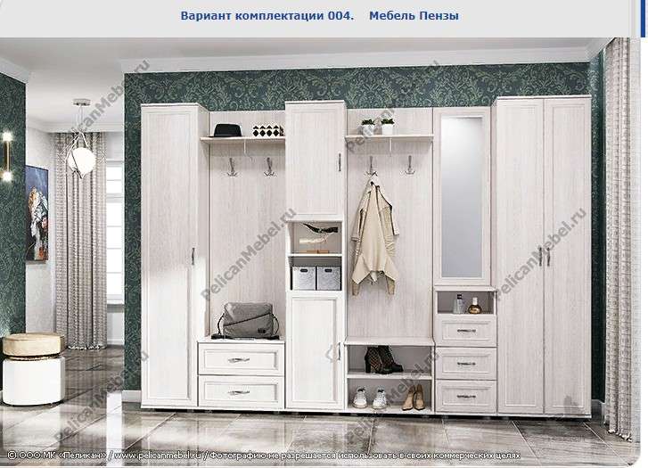 Элементы прихожей на фото: ТС, Z-0.4, ШК-0.6, ОС, ВШ. Цена на сайте указана за данную комплектацию.