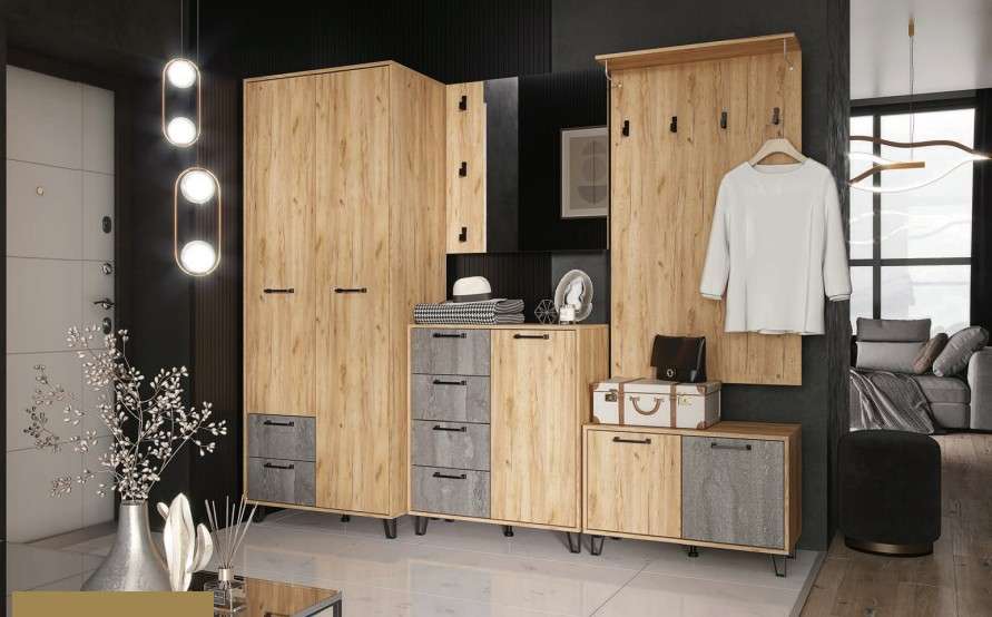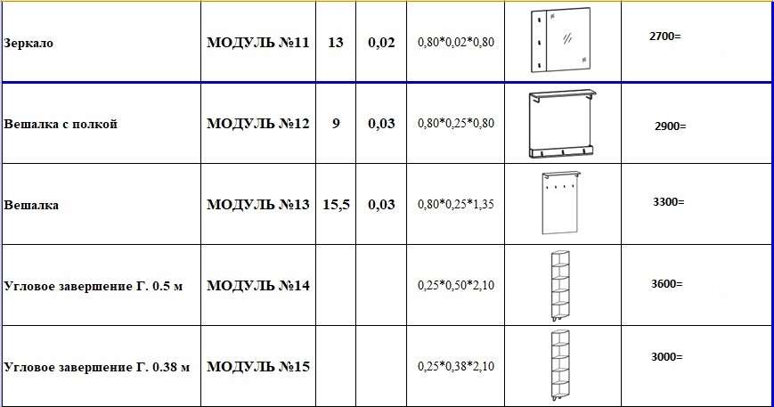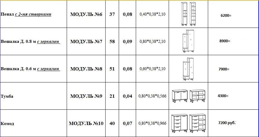Цена на сайте указана за прихожую на первой фото: Шкаф 2-х створчатый Г. 0.5 м, Зеркало, Комод, Вешалка, Тумба. Размер прихожей на фото: 2400х500х2100 мм, (ШхГхВ).