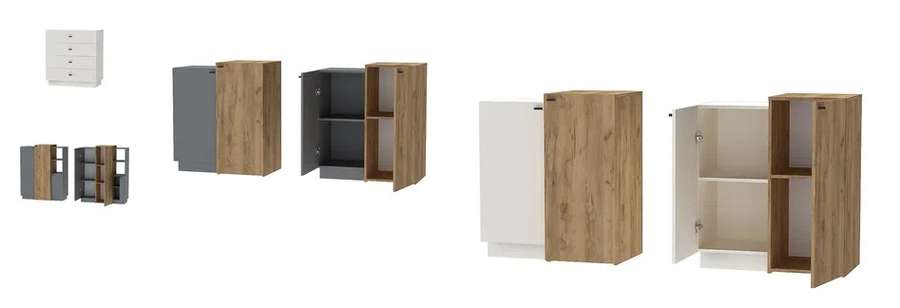 Коллекция Квадро выполнена в модной цветовой гамме, имеет большое количество модулей для приобретения комплектации необходимого состава и размера.