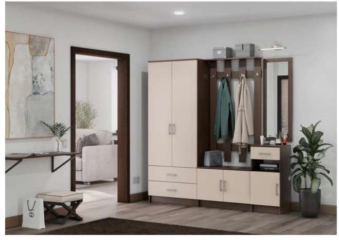 В решении проблем маленького пространства Вам поможет прихожая Машенька. Данная прихожая поразит Вас своей оригинальностью, минимализмом, но в тоже время своей функциональностью, ведь в ней Вы найдете все… обувницу, шкафчики, зеркало и даже стол.