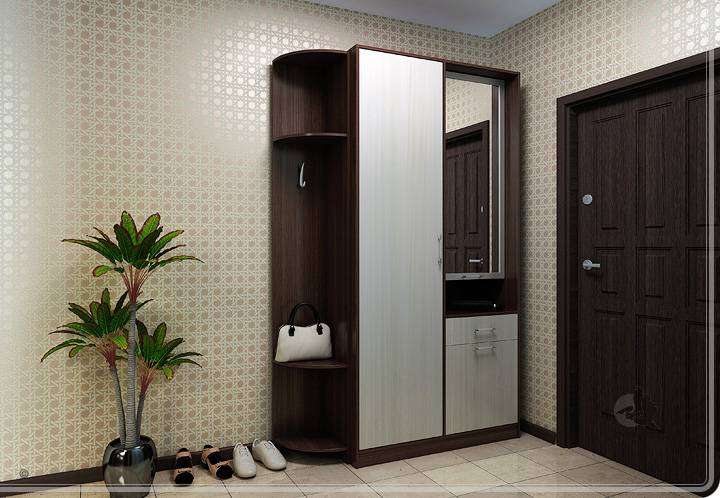Небольшая прихожая,но в ней есть все для удобства размещения вещей и одежды, ее можно дополнить углом.