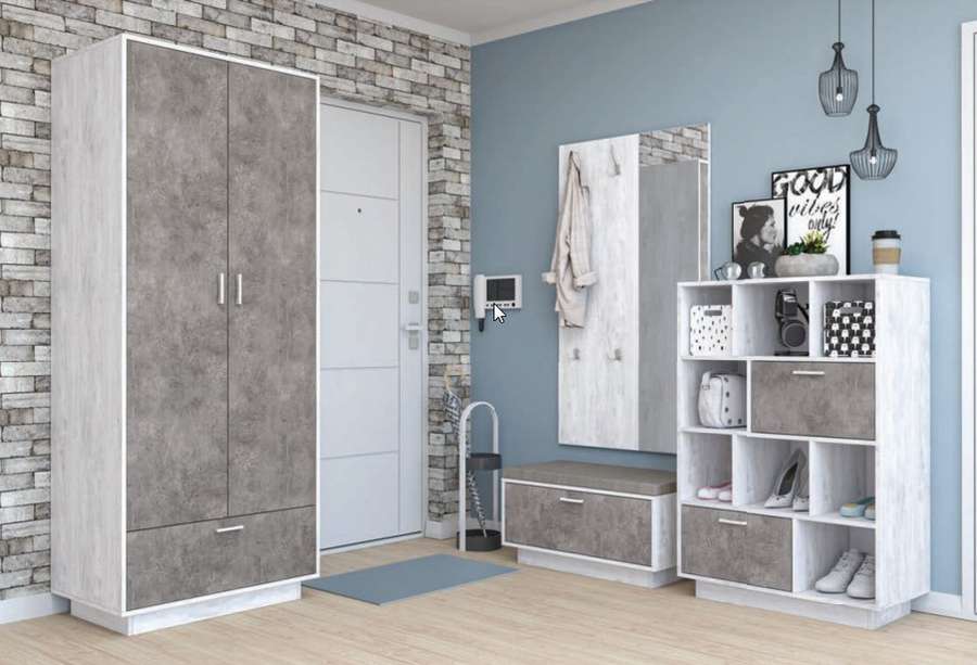 Цена на сайте указана за комплект на первой фото : Обувница ОБ-1, Вешалка с зеркалом, Шкаф ШК-1, Комод К-1.