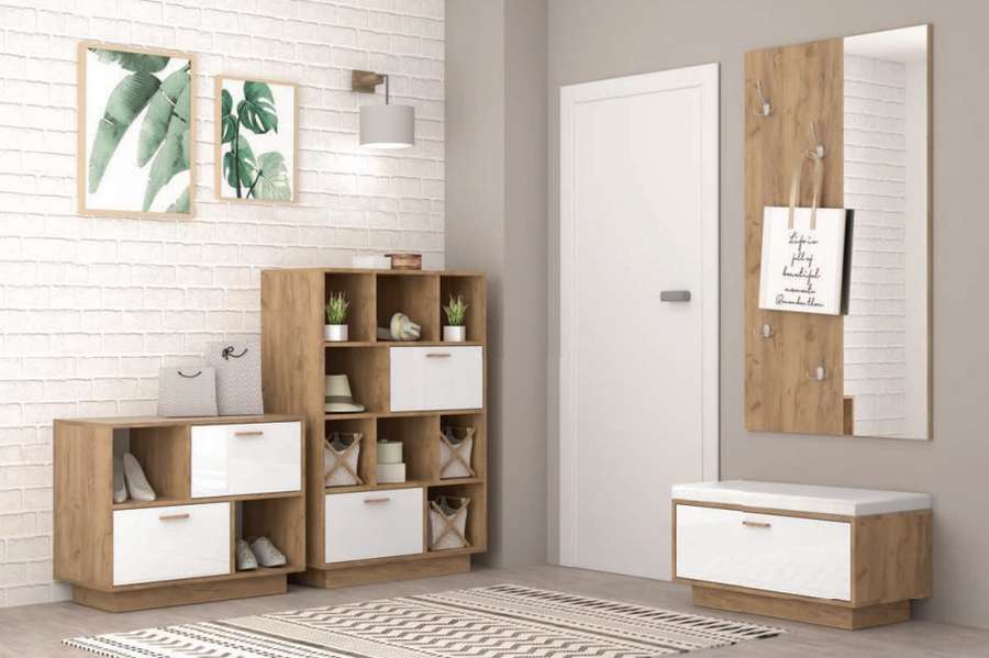 Цена на сайте указана за комплект на первой фото : Обувница ОБ-1, Вешалка с зеркалом, Тумба Т-1, Комод К-1.