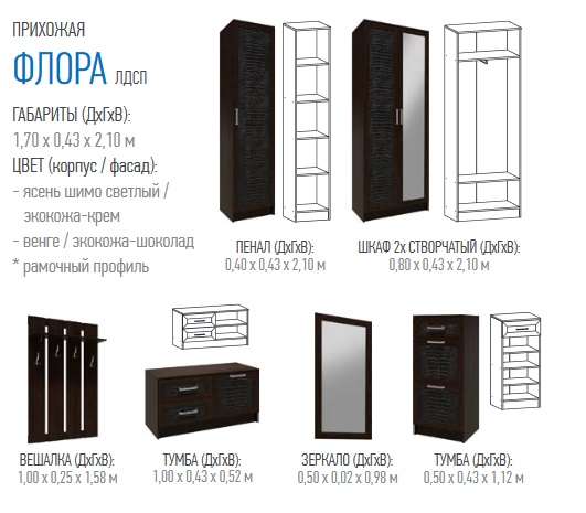 - Пенал «Флора» (Модуль №6): 400х430х2100. - 5100 руб.