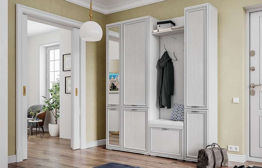 Эргономичная мебель в духе современных классических интерьеров — практичное решение для стильного обустройства прихожей. Пространство, с которого начинается дом, должно быть наполнено теплом и уютом. Поэтому ключевыми чертами модульной программы прихожей «Ливорно» служат чувство меры, отказ от излишеств, природные оттенки и «вечные» декоративные детали: рамочные патинированные фасады с объемной 3D-вставкой, лицевая фурнитура под старину.