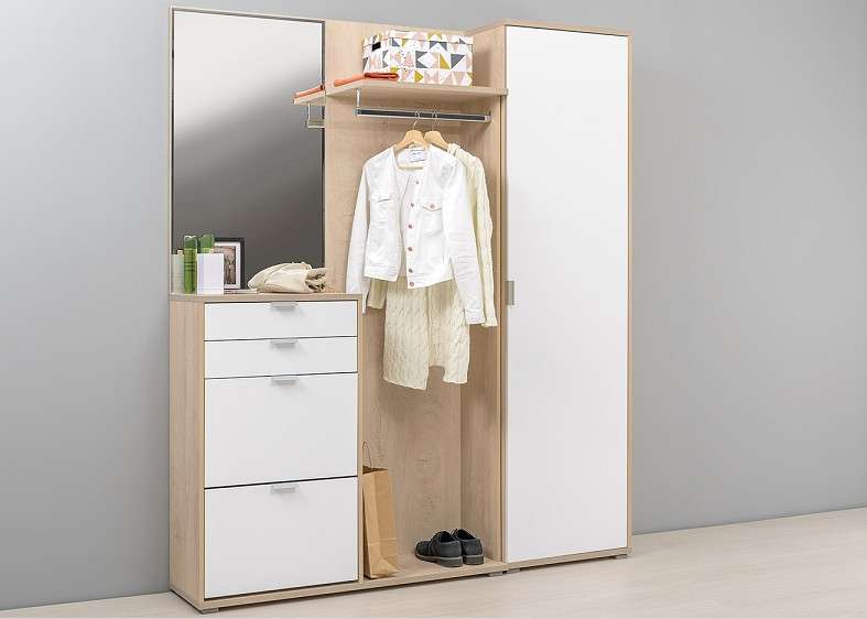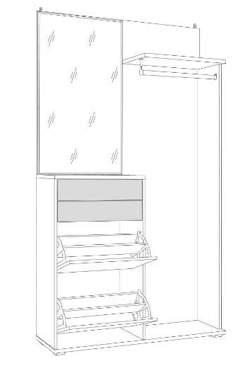 Готовое решение для небольшой прихожей. Присутствует штанга для одежды, выдвижные ящики, обувницы, зеркало с фацетом, полка и при этом прихожая Нэкст занимает всего лишь 1200 х 354 мм габаритного пространства!