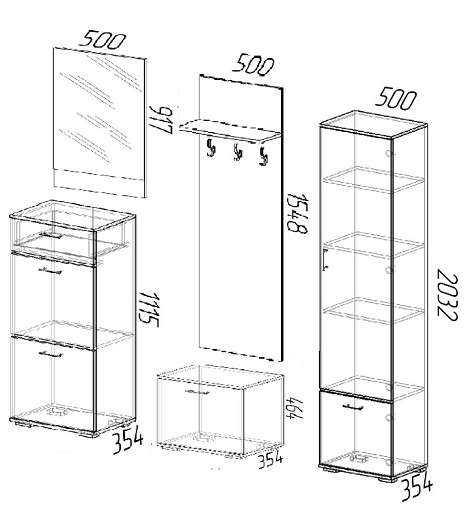 Можно приобрести прихожую с платяным шкафом ШП 600, Размер мм (ШхВхГ) - 4800 руб.: 1600х2032х354 . Стоимость прихожей с платяным шкафом (штанга) -12100 руб..