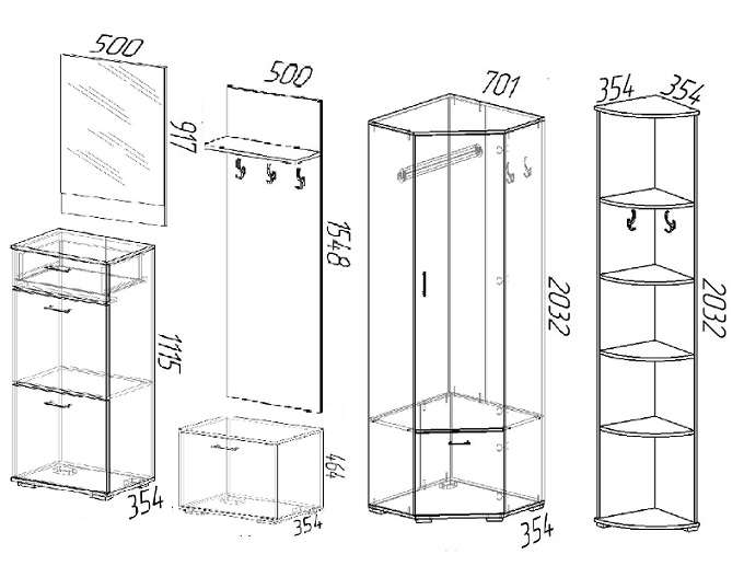 - Вешалка-пенал угловая (ву354) 354 (Ш) Х 2032 (В) Х 354 (Г) - 2700 руб.
