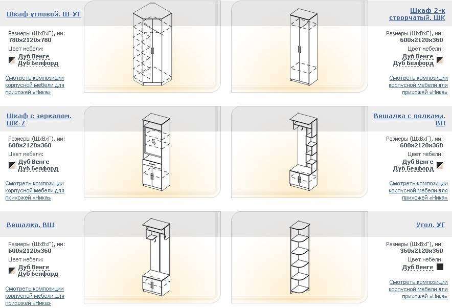 Модульная прихожая «Ника». Проявив фантазию, вы самостоятельно можете составить любую комбинацию этой практичной, комфортной мебели для прихожей.