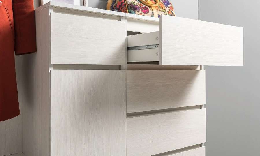 - Все фасады коллекции открываются за край. Помимо лаконичного внешнего вида, отсутствие лицевой фурнитуры обеспечивает удобство использования в тесном пространстве, можно не опасаться зацепиться за ручку.