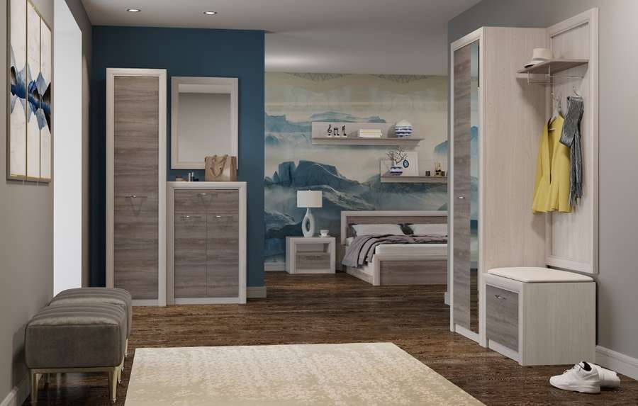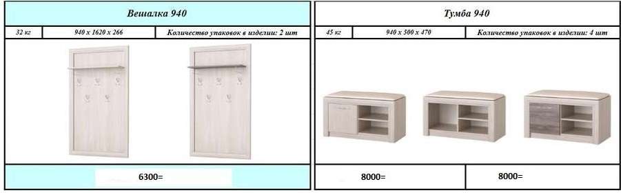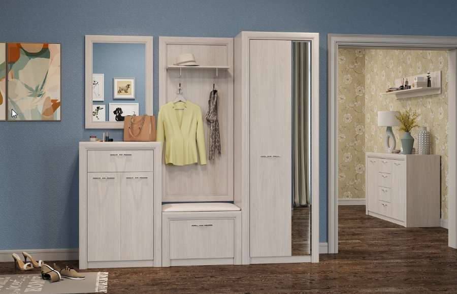 Цена указана за прихожую на первой фото в цвете Ясень Анкор светлый. Состав: -34000 руб.