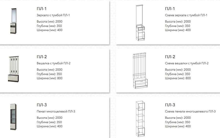 Прихожие серии «ПЛ» являются самым доступным решением среди всего ассортимента данной товарной группы. При этом наличие 7-ми модулей позволяет Покупателю сделать оптимальный выбор для грамотной организации пространства прихожей комнаты или холла.