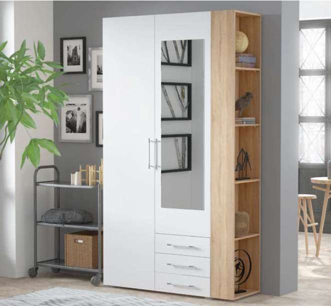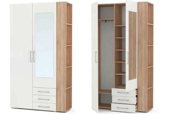 - За одной дверью выдвижная вешалка для одежды.За второй дверью - полки.