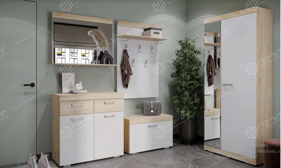 - Цена указана за комплект на фото: Зеркало ЗС-900; Тумба ТС-900; Вешалка ВШС-800; Обувница ОС-800; Шкаф ШСЗ-800.